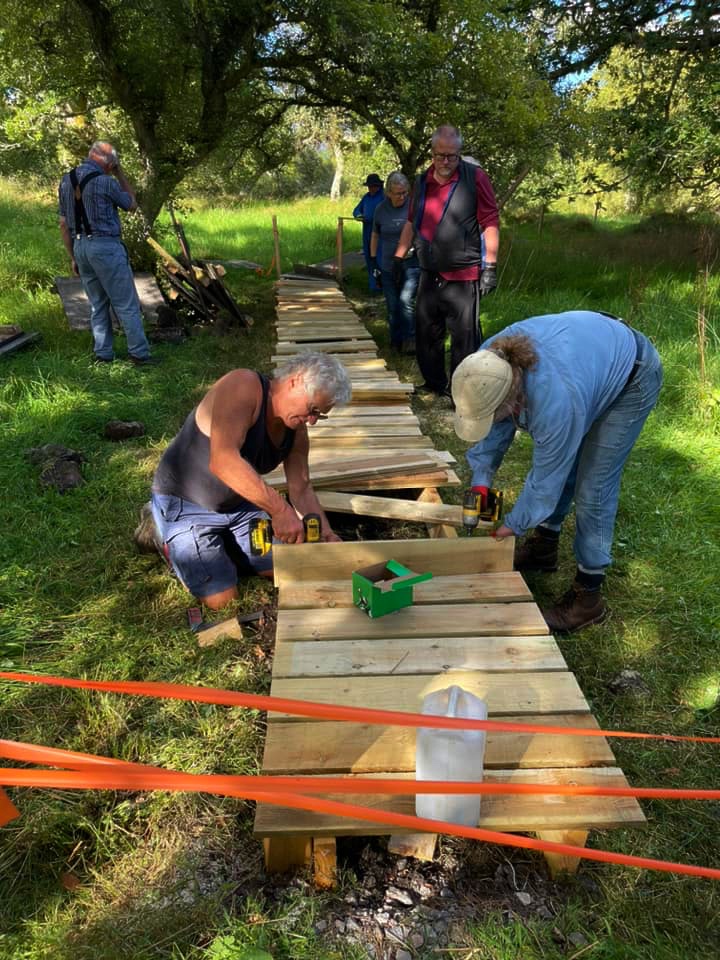 We organise a regular volunteer afternoon on the 1st Thursday of each month at 2pm, when we get together to carry out routine maintenance such as path clearing, birch thinning, and pond clearing.